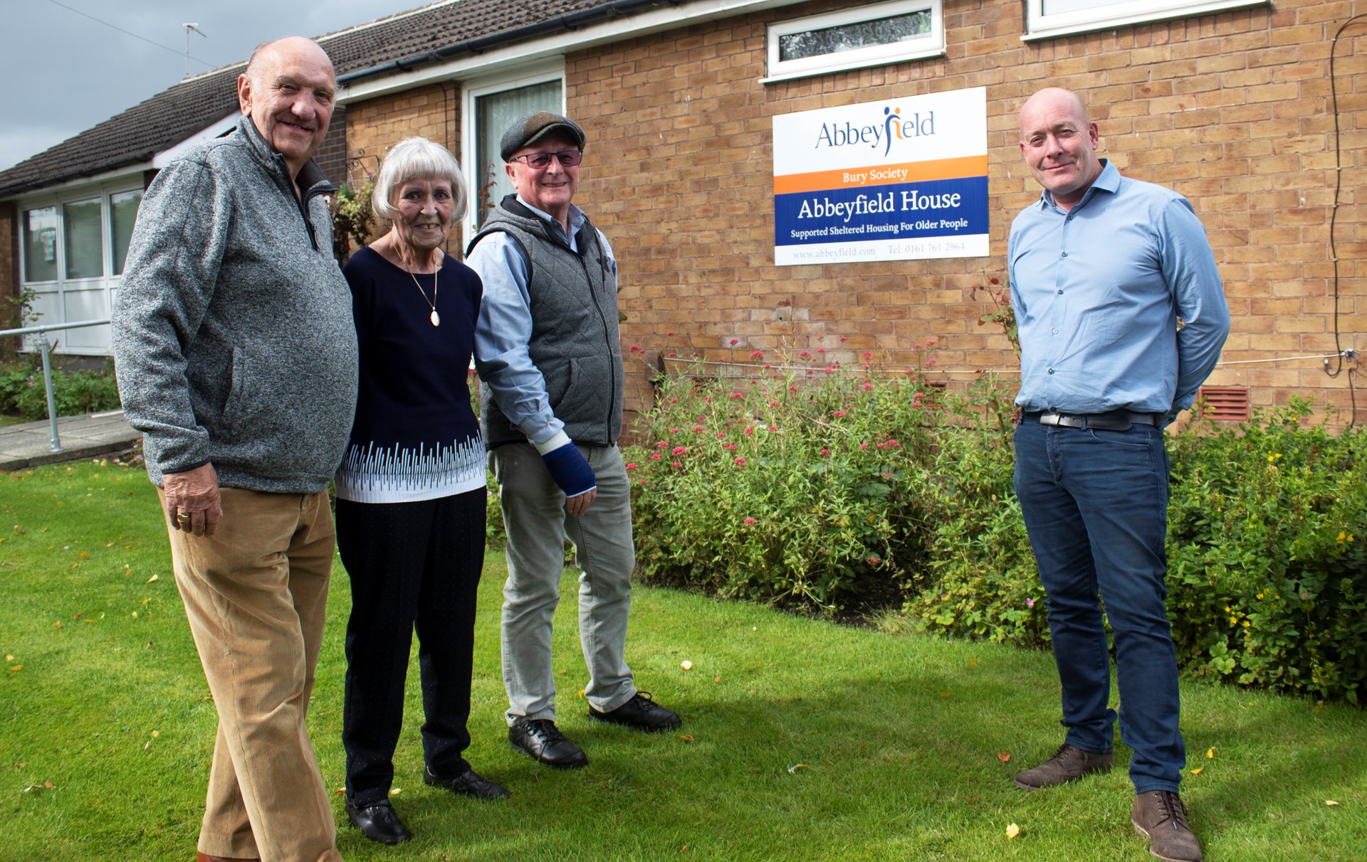 Photo: (Left to right) Alan Creswell (Abbeyfield House Trustee), Yvonne Creswell (Abbeyfield House Chairman), Bob Bibby (Abbeyfield House Treasurer) with Revilo Developments Managing Director, Darren Clawson.