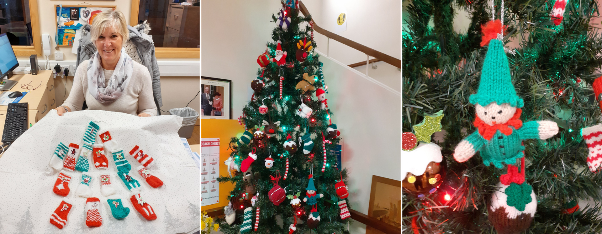 Residents, staff and volunteers all played a part in knitting some fantastic decoration for the tree at David Gresham House. A truly collaborative effort!
