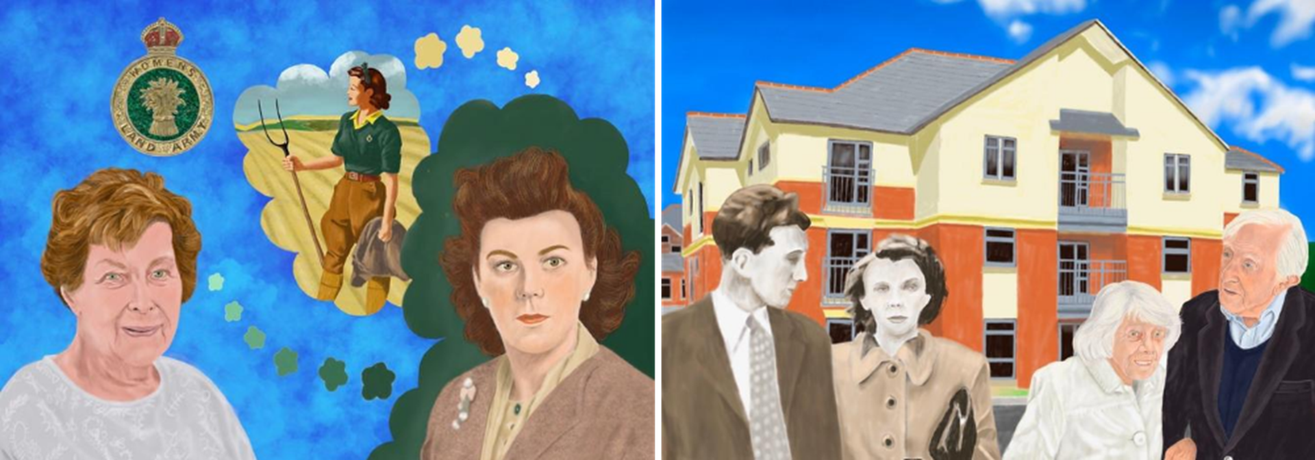 (Left: Fellow resident Joan in the past and now. Right: Fellow residents John and Celia in the past and now on the foreground of Westbourne House)