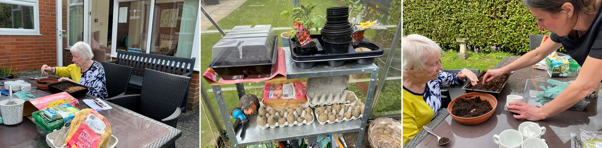 At Cunningham House in North Weald, our residents have been getting involved in the gardening; planting a herb garden, potatoes, onions and runner beans that they will use in meals prepared at the home.