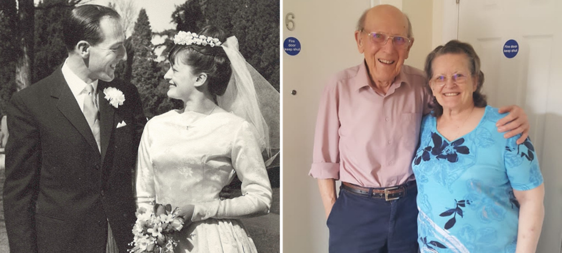 (Photo shows Peter and Marion on their wedding day, and now)