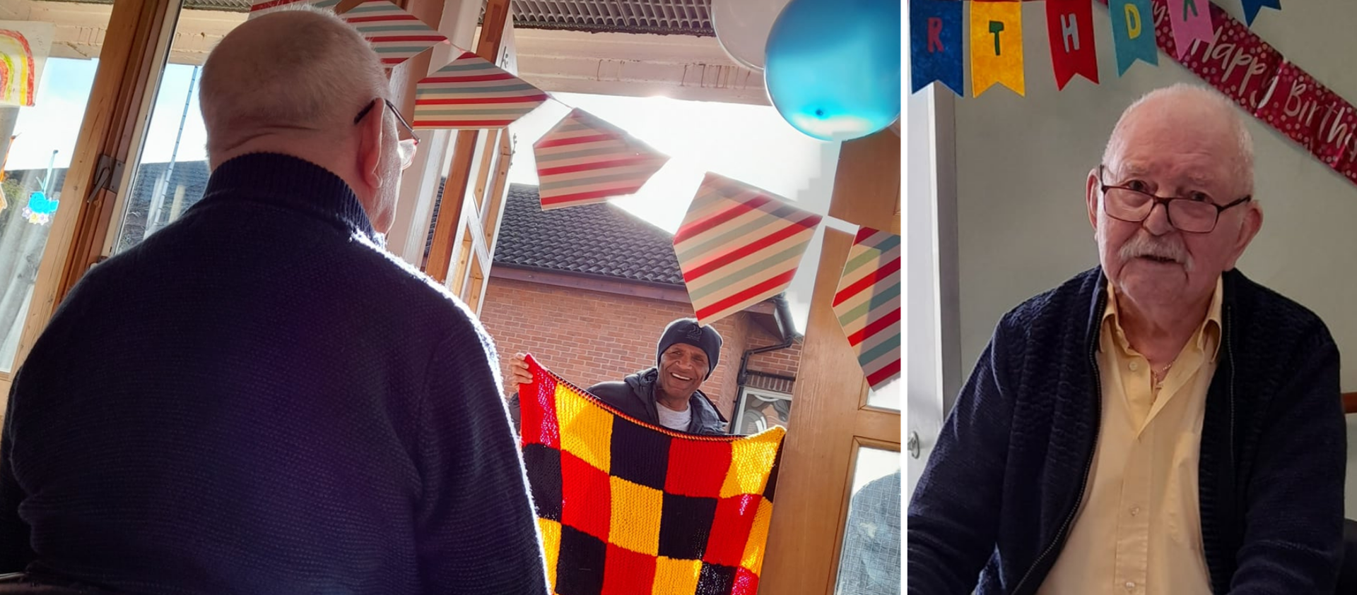 Des Hodges, a resident at Friars Mead residential care home in Kings Langley, has been a lifelong supporter of Watford Football Club, and was treated on his 95th birthday by a visit from former player and Coach Luther Blissett.