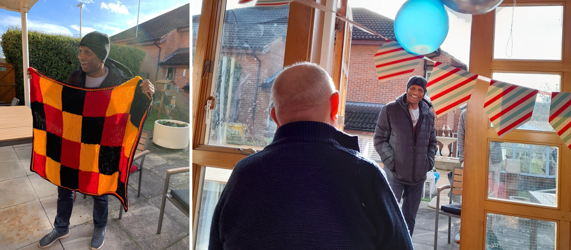 Friars Mead Manager Karoline Gullin said, “It was a delight to see Des’ face when he realised who had come to collect the blanket. The sun was also shining to making it a wonderful morning for all!” Des’ generosity is famous at the home, and he has donated some of his blankets to Northwick Park hospital.